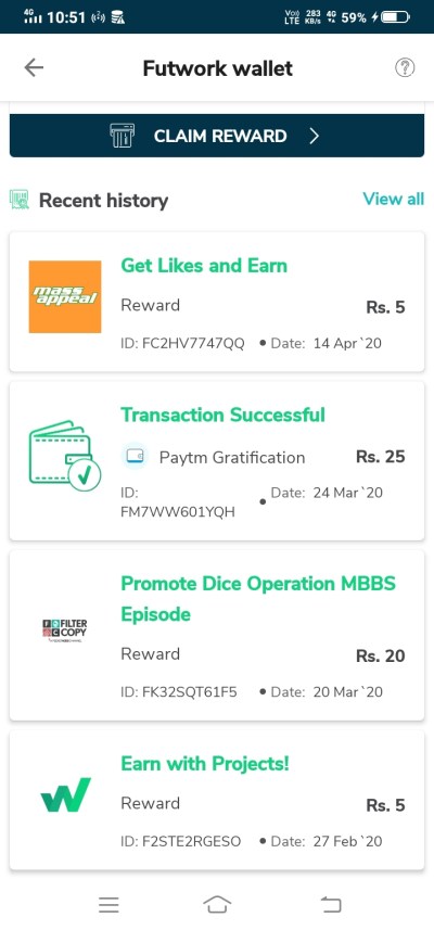 Futwork has a refer and earn system where you can earn by referring your friends and family. You get Rs.30/- for per referral.